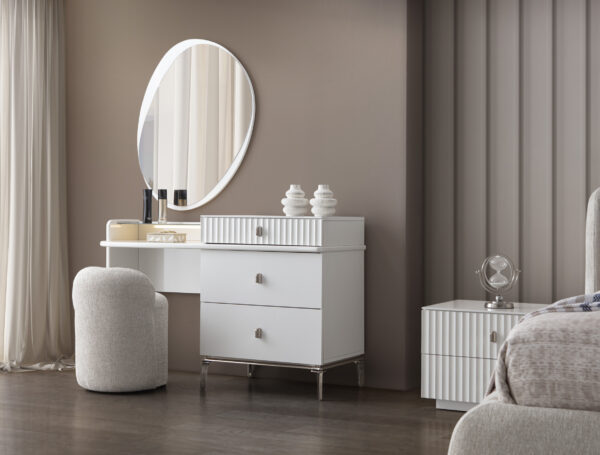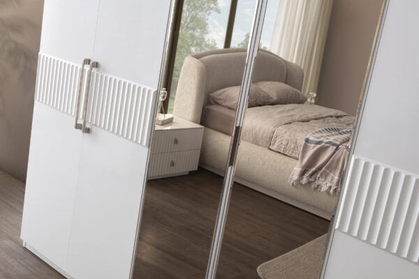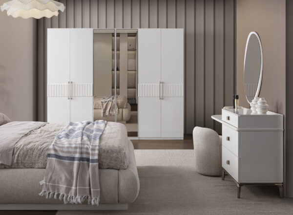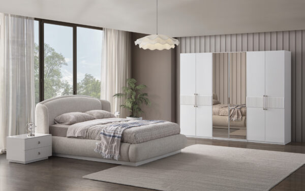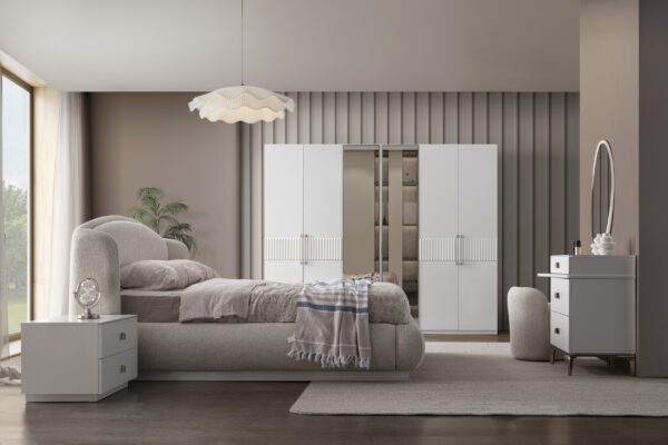 | Takım İçeriği | 1 adet gardırop, 1 adet karyola ve başlığı, 2 adet komodin, 1 adet şifonyer ve aynasından oluşmaktadır. |