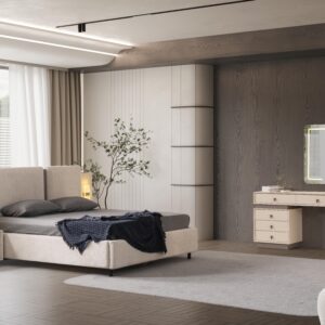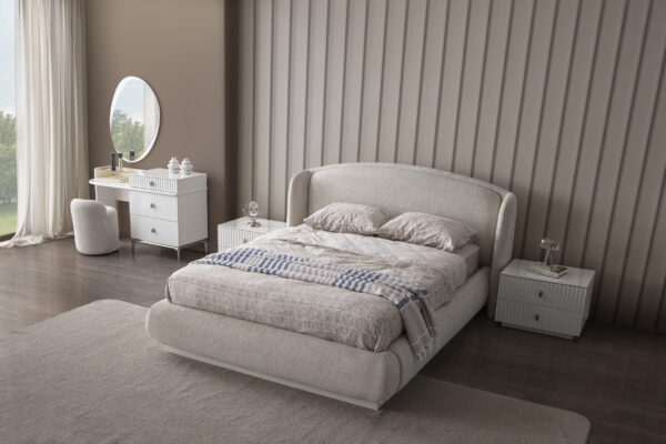 | Karyola | 160*200 ölçülerinde baza fonksiyonu bulunmaktadır. Suntalam malzeme üzerine döşenen kaliteli kumaş ile üretilmiş olup, başlık kısmında temizliği kolay, silinebilir kumaş tercih edilmiştir. İsteğe göre başlık kumaşı değişebilir. Led Aydınlatma bulunmaktadır. |
